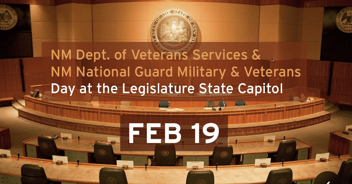 Join us for the annual day to honor veterans and active-duty service members at the State Capitol February 19, 2025. The New Mexico Department of Veterans’ Services and the New Mexico National Guard will honor New Mexico’s “Enduring Legacy” of veterans and members of the military community for their service and sacrifice for our country.